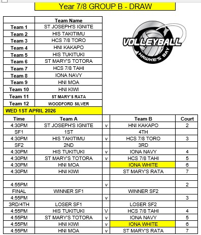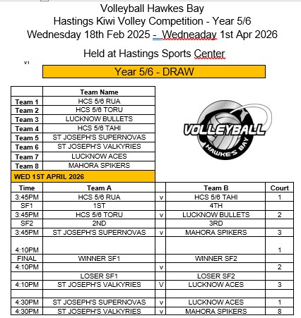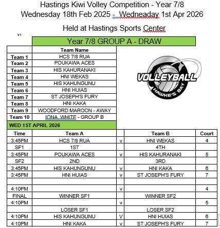 HASTINGS KIWIVOLLEY COMPETITION TERM 1 2026, 2 games per night in the following Groups: FINALS